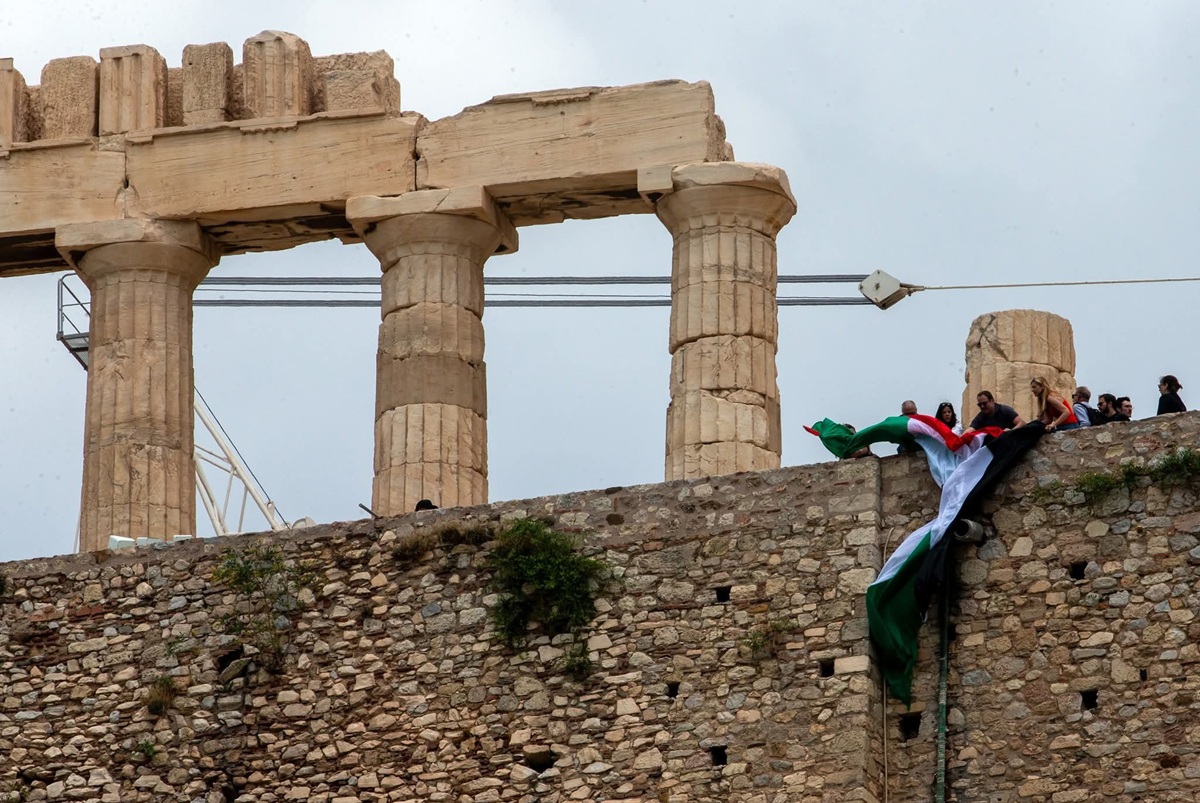 Το πρωί της Τετάρτης μέλη της Νέας Αριστεράς και της Νεολαίας του κόμματος πραγματοποίησαν ακτιβισμό στην Ακρόπολη υψώνοντας την σημαία της Παλαιστίνης.