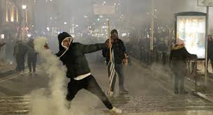 Violent clashes between protesters and police during a protest against corruption organized by the opposition in Tirana. Around 16 police officers were injured.