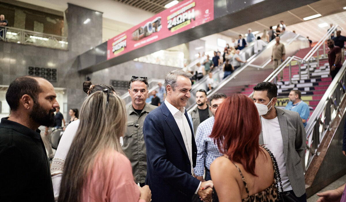 Τον σταθμό του Μετρό στο Σύνταγμα επισκέφθηκε την Παρασκευή (12/9) ο Κυριάκος Μητσοτάκης, ενόψει της έναρξης της μόνιμης 24ωρης λειτουργίας των γραμμών 2 και 3, του Τραμ και επιλεγμένων λεωφορειακών γραμμών κάθε Σάββατο.