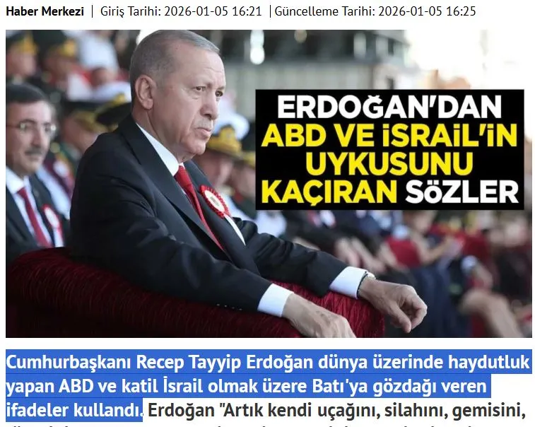 Ο Πρόεδρος Ρετζέπ Ταγίπ Ερντογάν, σε άρθρο του στο ένθετο «VİZYON 2026» της Yeni Şafak, περιέγραψε τις πρόσφατες πολιτικές, οικονομικές και διπλωματικές κινήσεις της Τουρκίας.