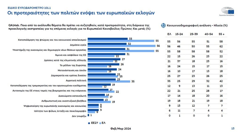 Το θέμα της δημόσια υγείας φαίνεται να απασχολεί ιδιαίτερα του έλληνες με το τελευταίο Ευρωβαρόμετρο, πριν από τις ευρωεκλογές του Ιουνίου, να αποτυπώνει τα κομβικά ζητήματα πριν την κάλπη.
