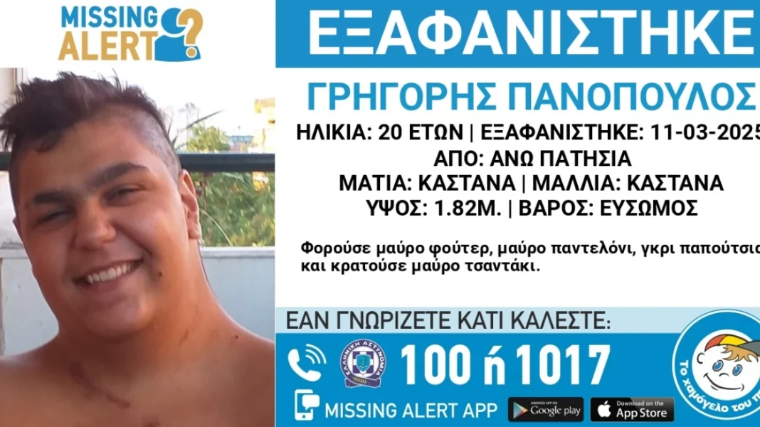 Στις 11 Μαρτίου 2025, εξαφανίστηκε από την περιοχή της Αθήνας, ο Γρηγόρης Πανόπουλος, 21 ετών.