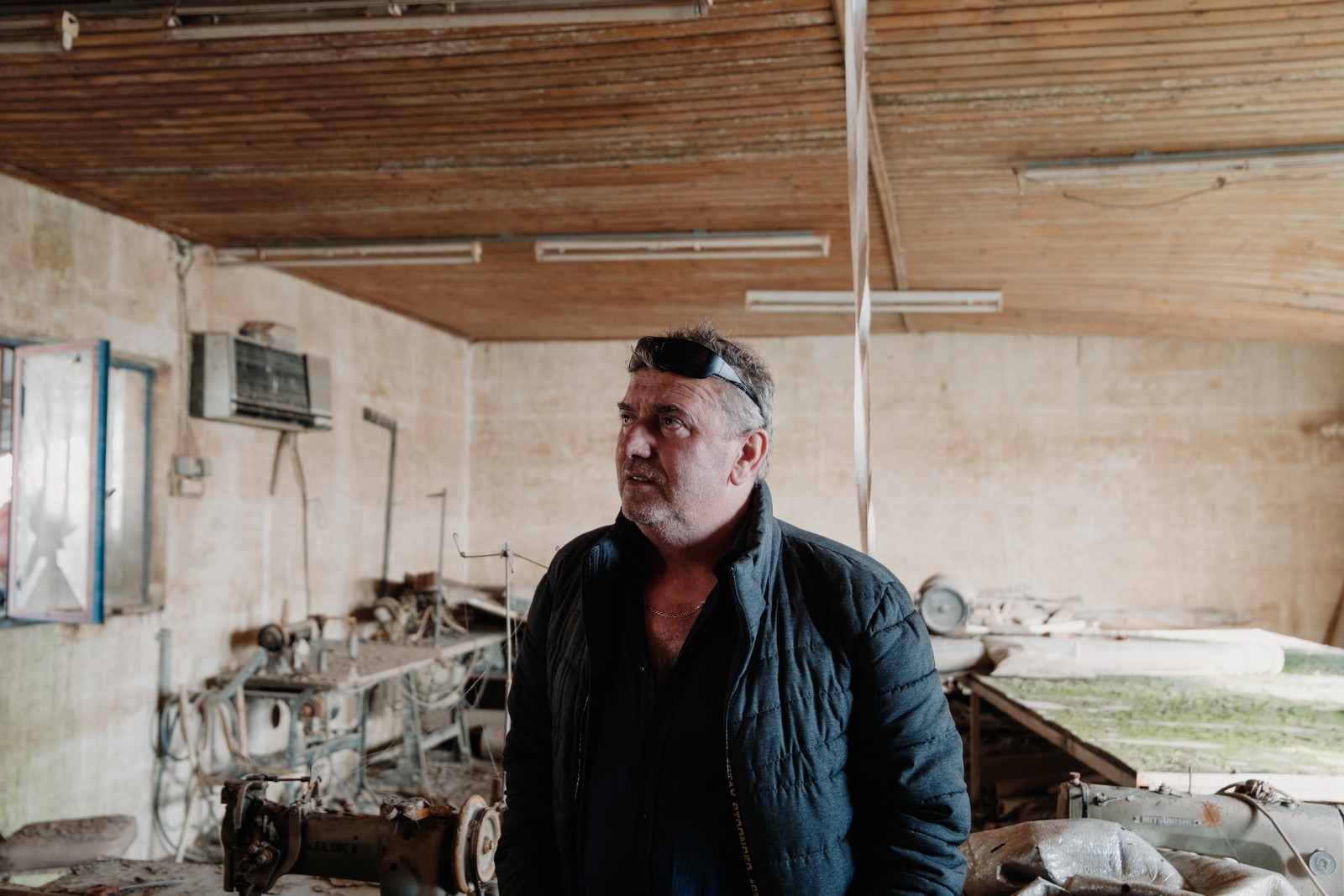 O αδερφός της Ντίνας, ο Τάκης, έχασε δύο αμάξια, δυο σπίτια και την επιχείρηση με τέντες που είχε δίπλα από τα χωράφια του. Σήμερα και οι τρεις τους, ζουν στη δομή στο Κουτσόχερο.