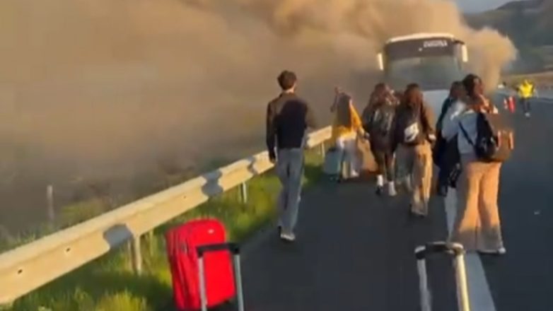 Μια κοπέλα εκ των επιβατών, παρά τον πανικό που επικρατούσε, κατάφερε να καταγράψει σε βίντεο το συμβάν. Οι επιβάτες φαίνονται να τρέχουν έντρομοι ενώ οι Δυνάμεις της Πυροσβεστικής προσπαθούσαν να κατασβήσουν το φλεγόμενο λεωφορείο.
