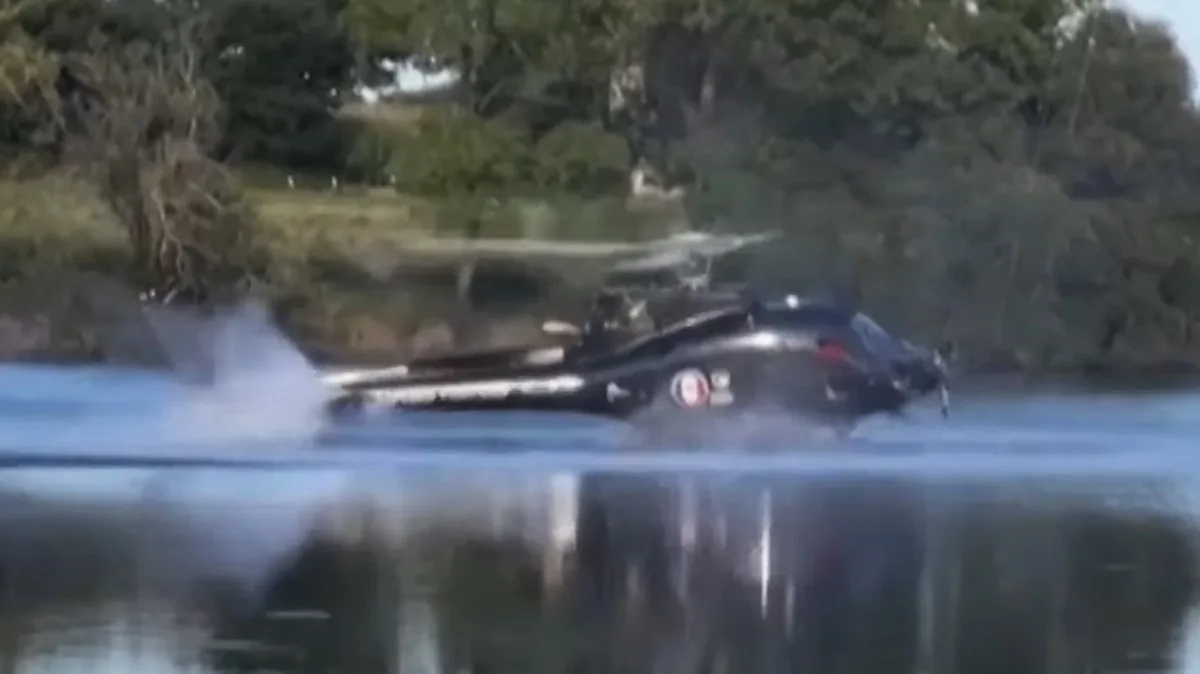 Το περιστατικό καταγράφηκε σε βίντεο από αυτόπτες μάρτυρες, το οποίο δείχνει τη στιγμή που το ελικόπτερο πλησιάζει για ανεφοδιασμό και ξαφνικά χάνει ύψος, καταλήγοντας μέσα στη λίμνη.