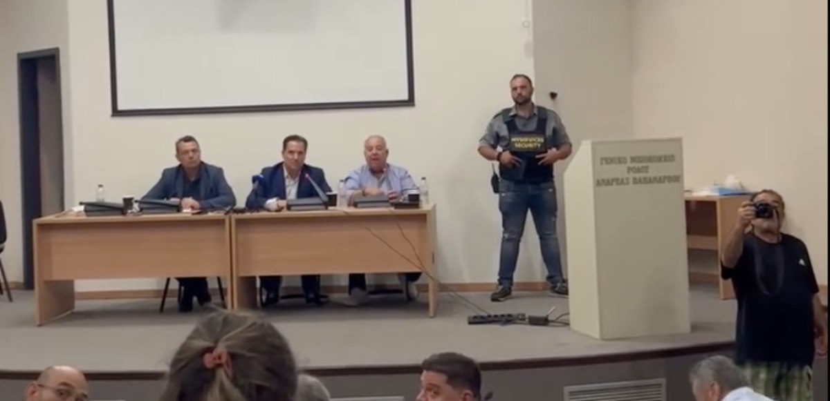 Όπως αναφέρει το skyrodos.gr, σεκιουριτάδες έβγαζαν έξω από την αίθουσα εργαζόμενους.