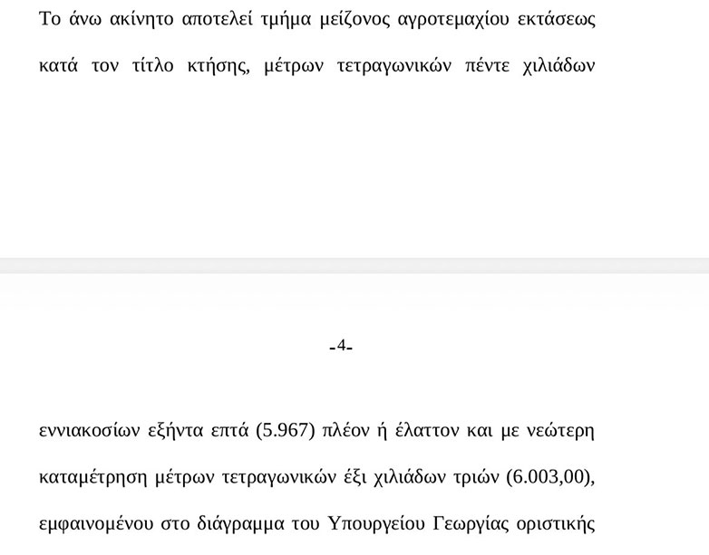 Οι υπογραφές έπεσαν στις 27 Ιουνίου 2024 σε συμβολαιογράφο στον Άγιο Στέφανο και το οικόπεδο ήταν 2 στρεμμάτων, εντός του ορίου του οικισμού. Στο συμβόλαιο αναφέρεται: