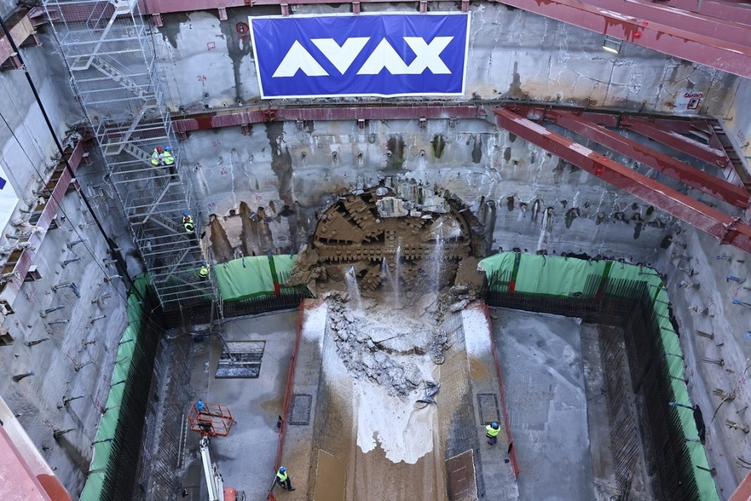 Το «ξετρύπημα» αυτό του πρώτου από τους δύο μετροπόντικες που δουλεύουν για το μεγαλύτερο δημόσιο έργο της χώρας, είναι το ορόσημο της θραύσης του τοιχίου του φρέατος, στη γλώσσα του κατασκευαστικού κλάδου ονομάζεται breakthrough (μπρέικθρου).