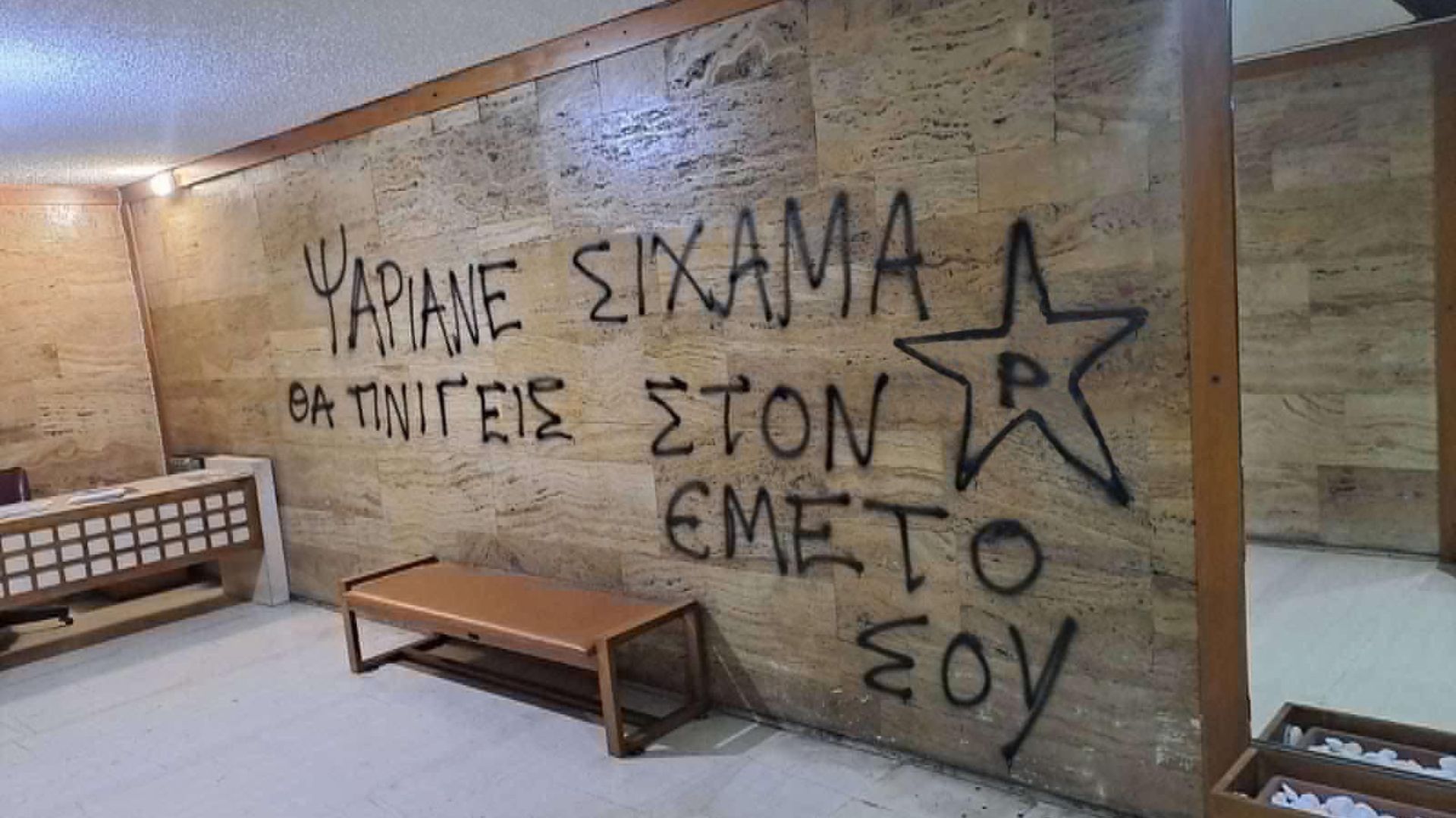 Μέλη της ομάδας έγραψαν στην είσοδο της πολυκατοικίας που διαμένει ο πρώην βουλευτής: «Ψαριανέ σίχαμα θα πνιγείς στον εμετό σου».