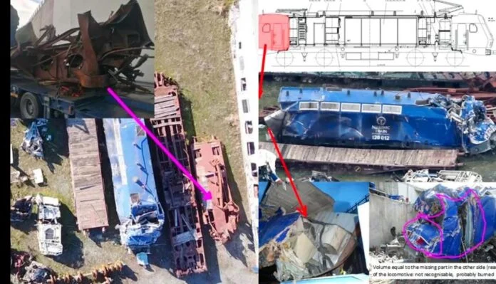 Ωστόσο, το πόρισμα αναφέρει ένα πολύ σημαντικό εύρημα στο οποίο κανένας δεν έχει εστιάσει έως τώρα. Όπως καταγράφεται και αποτυπώνεται στις φωτογραφίες, οι ειδικοί σημειώνουν ότι το λείπει η μισή πλατφόρμα με τις λαμαρίνες καθώς και το πίσω μέρος της μηχανής του εμπορικού. Γιατί δεν εντοπίστηκαν αυτά τα μέρη της εμπορικής αμαξοστοιχίας και τι απέγιναν άραγε; Τι μπορεί να υπήρχε στο εσωτερικό τους;