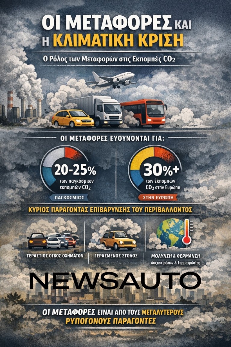 Και μέσα σε αυτό το σκηνικό, υπάρχει ένας παράγοντας που συστηματικά υποτιμάται στη δημόσια συζήτηση για λόγους που θα αναλύσουμε πιο κάτω: οι μεταφορές και κυρίως ο γερασμένος στόλος οχημάτων. Σύμφωνα με διεθνείς μελέτες, οι μεταφορές ευθύνονται για περίπου το 20% έως 25% των συνολικών εκπομπών διοξειδίου του άνθρακα παγκοσμίως, ενώ στην Ευρώπη το ποσοστό αυτό αγγίζει ή και ξεπερνά το 30%. Στην Ελλάδα δε, με 18 χρόνια μέσο όρο ηλικίας για τα αυτοκίνητα και +25 για τα φορτηγά, van κλπ, το ποσοστό επιβάρυνσης ξεπερνάει το 38%.
