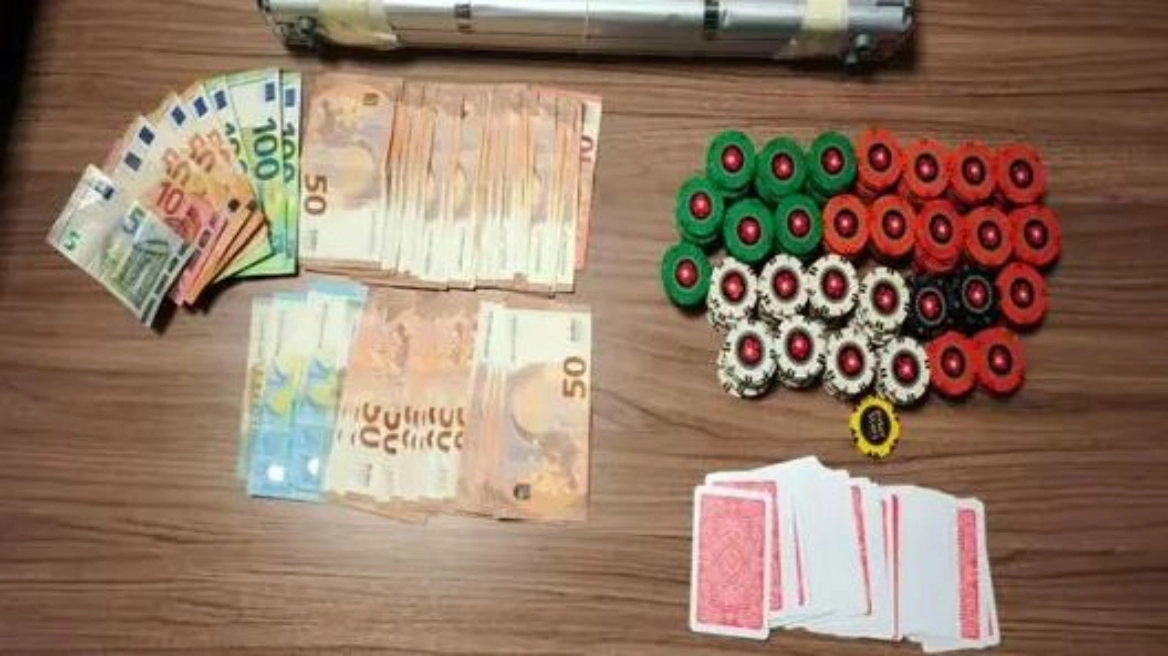 Ειδικότερα, κατά τον έλεγχο διαπιστώθηκε ότι, στον χώρο είχαν εγκατασταθεί -2- τραπέζια παιγνιόχαρτων «POKER», σ’ ένα από τα οποία διεξαγόταν το αντίστοιχο παίγνιο, όπου συμμετείχαν ένας από τους κατηγορουμένους ως Dealer και -8- παίκτες. Το ποντάρισμα γινόταν με χρήση μαρκών, οι οποίες αντιστοιχούσαν σε χρηματικά ποσά, που είχαν προκαταβληθεί από τους παίκτες.
