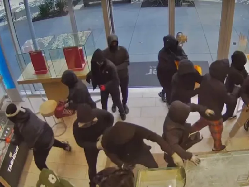 Τουλάχιστον 20 άτομα «μπούκαραν» σε κοσμηματοπωλείο στο Σαν Ραμόν, μέρα μεσημέρι, σπάζοντας ό,τι έβρισκαν μπροστά τους.