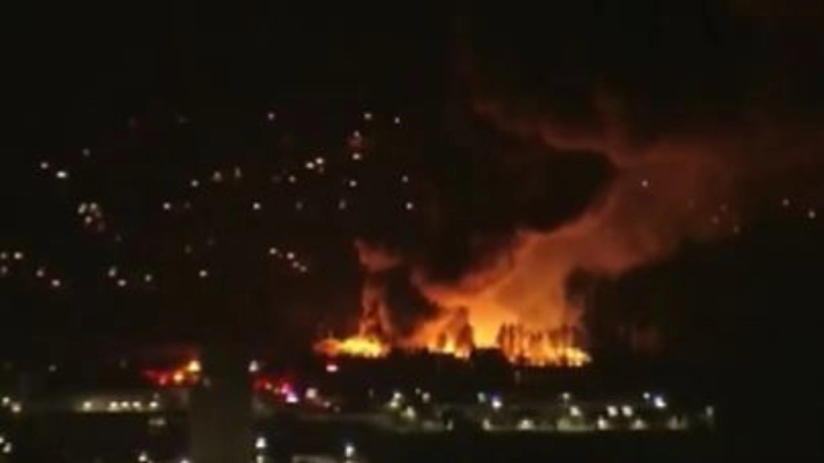 Βίντεο που μεταδίδουν αμερικανικά μέσα ενημέρωσης δείχνουν τις φλεγόμενες εγκαταστάσεις και πυκνούς καπνούς να υψώνονται στον ουρανό της περιοχής.