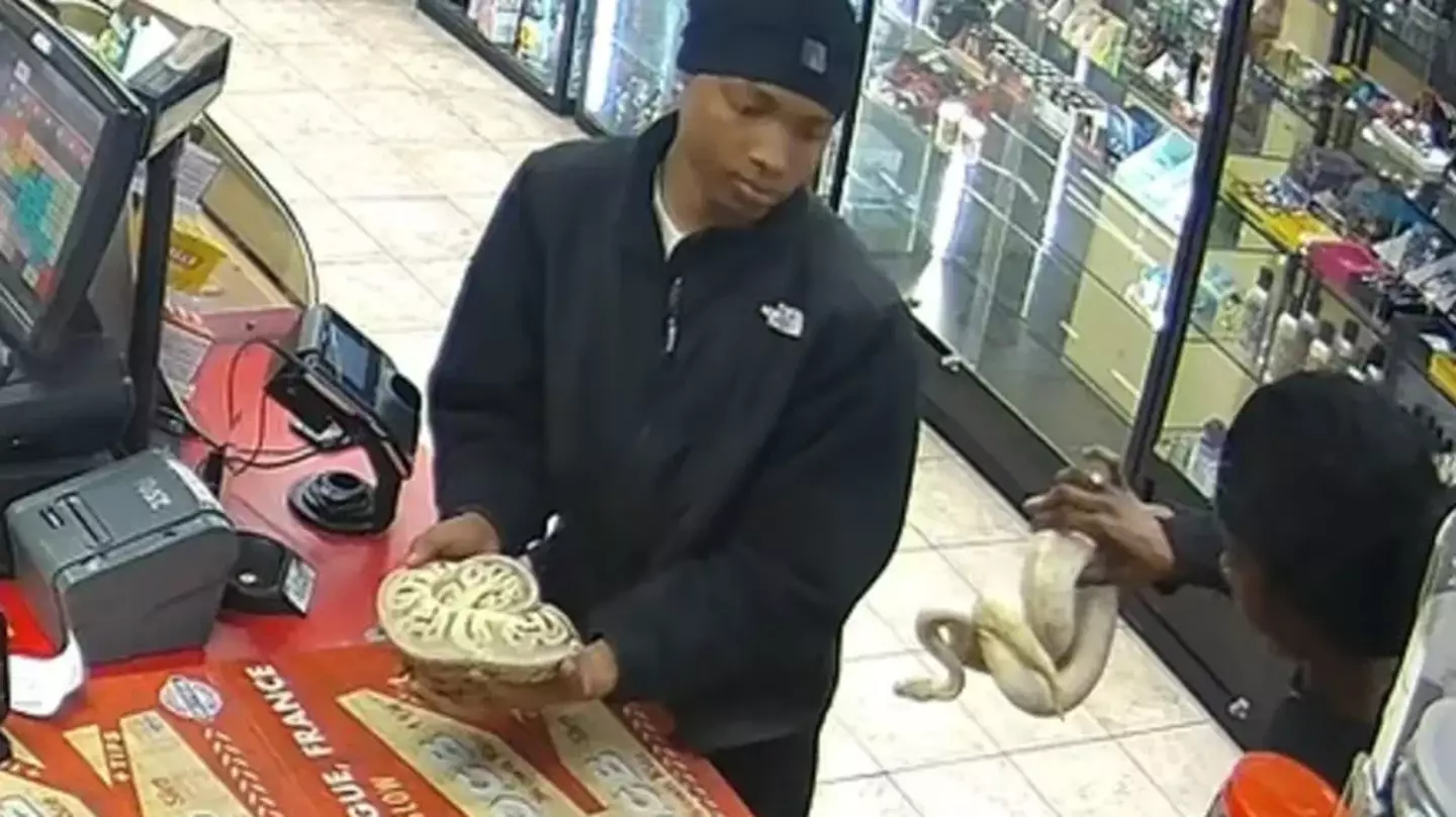 Σε βίντεο από κάμερα ασφαλείας, που δόθηκε στη δημοσιότητα από το γραφείο του σερίφη της κομητείας Μάντισον, οι ληστές διακρίνονται να κρατούν τους πύθωνες αντί για όπλα.
