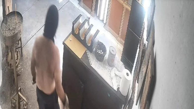 Κάποια στιγμή αντιλήφθηκε ότι στον χώρο υπήρχε κάμερα ασφαλείας που κατέγραφε τις κινήσεις του. Τότε βγήκε από την εκκλησία, βρήκε ένα κομμάτι ξύλο ή σίδερο και επέστρεψε για να σπάσει την κάμερα.