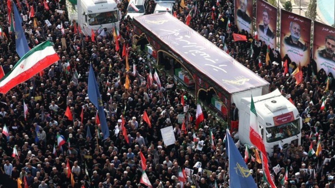 Ο Ιρανός πρόεδρος Μασούντ Πεζεσκιάν συμμετέχει στην τελετή, σύμφωνα με εικόνες που μετέδωσε η κρατική τηλεόραση. Στον δρόμο, χιλιάδες Ιρανοί κρατούσαν σημαίες της Ισλαμικής Δημοκρατίας και φωτογραφίες των νεκρών.