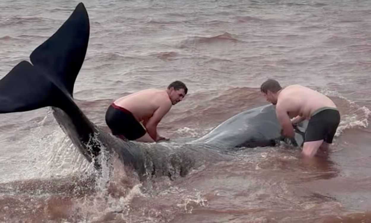 Τρεις φάλαινες ξεβράστηκαν σε μία παραλία της Νέας Σκωτίας πριν λίγες ημέρες και η άμπωτη πλησίαζε γρήγορα, με τον χρόνο να τελειώνει.