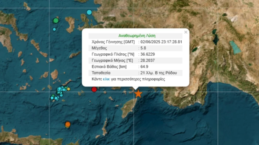 Ισχυρή σεισμική δόνηση 5,8 Ρίχτερ στα ανοιχτά της Ρόδου