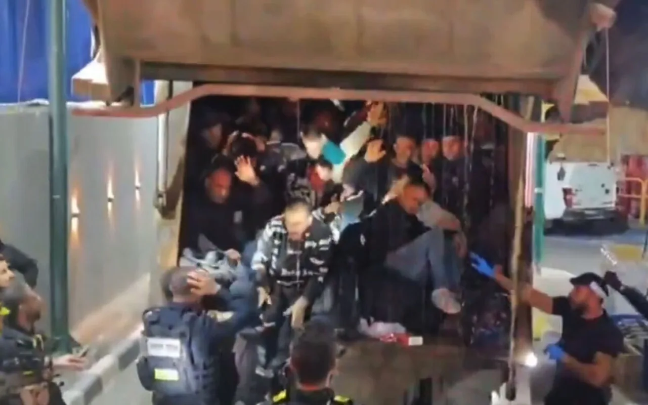 Όπως φαίνεται στο βίντεο που δημοσιεύτηκε στο Χ από την επιχείρηση της ισραηλινής αστυνομίας και των ισραηλινών ενόπλων δυνάμεων, οι 68 Παλαιστίνιοι ήταν στοιβαγμένοι σε… απορριμματοφόρο!