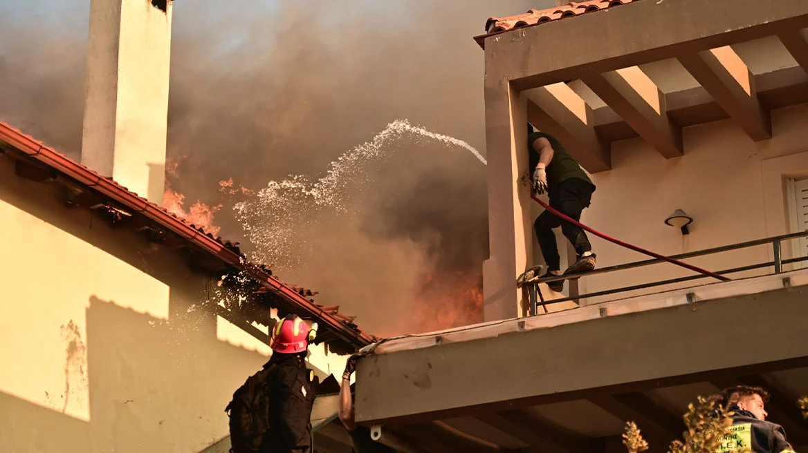 Κάτοικοι με λάστιχα προσπαθούν να σώσουν τα σπίτια τους στο Κρυονέρι Αττικής. Δείτε περισσότερα εδώ
