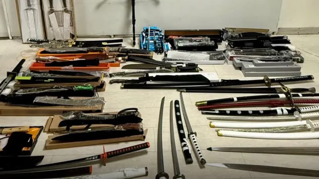 Ειδικότερα, μετά από διερεύνηση πληροφοριών αναφορικά με κατάστημα που πουλούσε παράνομα μέσω διαδικτύου (e-shop) διαφόρων τύπων μαχαίρια και ξίφη, συγκροτήθηκε ειδική ομάδα αστυνομικών, η οποία εξακρίβωσε το χώρο του φυσικού καταστήματος και πιστοποίησε την εγκληματική του δραστηριότητα.
