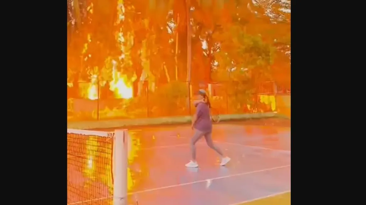 Μετά την πτώση του κεραυνού, η TikToker εμφανώς ταραγμένη έριξε τη ρακέτα της και έτρεξε να βρει καταφύγιο.