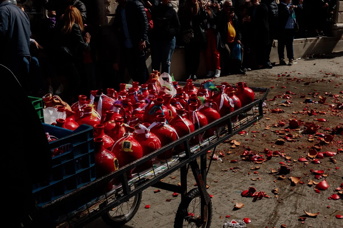 Πλήθος κόσμου συγκεντρώθηκε στις γειτονιές του νησιού για να δει από κοντά το εντυπωσιακό έθιμο, χωρίς ευτυχώς να καταγράφονται άλλα απρόοπτα ή ατυχήματα.