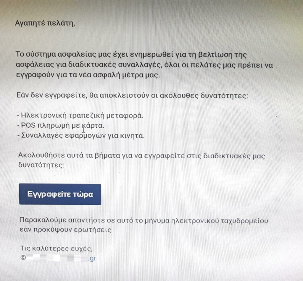 Ο ίδιος έλαβε στο email του ένα μήνυμα το οποίο ζητούσε να βάλει τα προσωπικά του στοιχεία και τους τραπεζικούς τους λογαριασμούς.