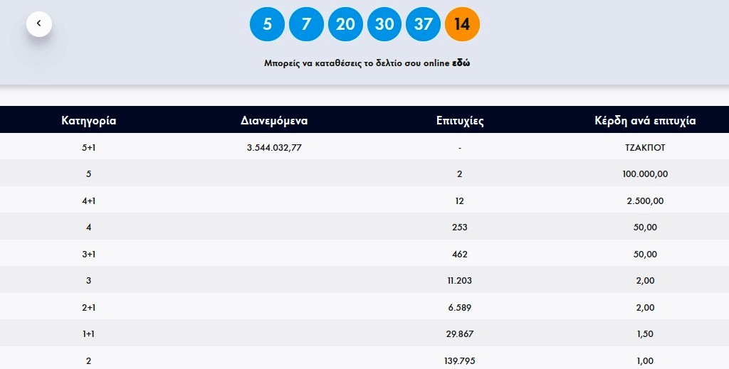 - Δείτε τον αναλυτικό πίνακα με το ποσά που μοιράζονται σήμερα στους νικητές ανά κατηγορία