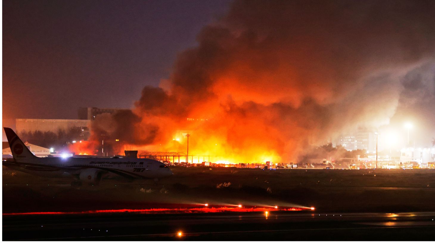 Εξαιτίας της φωτιάς, όλες οι πτήσεις αναστέλλονται.