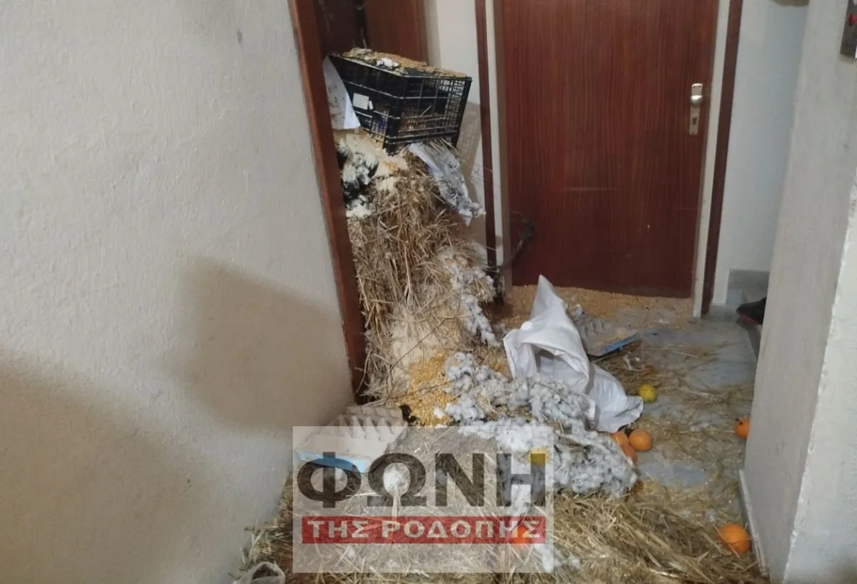Μετέφεραν τη διαμαρτυρία τους στην καρδιά της πόλης, ρίχνοντας άχυρα, βαμβάκι, σιτάρι και κοπριά την είσοδο της πολυκατοικίας και τον διάδρομο έξω από το γραφείο του βουλευτή Ροδόπης της ΝΔ, Ευριπίδη Στυλιανίδη.