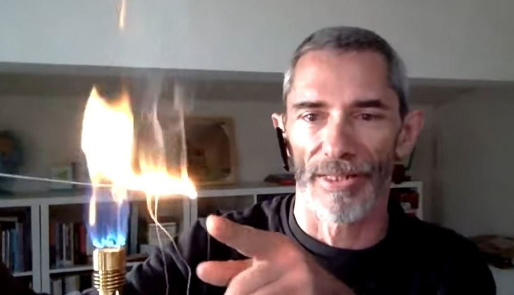 «Πολύ κόσμος ψάχνει πράγματα στο Internet και νομίζει ότι κάτι έγινε. Εδώ είναι ένας λύχνος Μπούνσεν, με τη θερμοκρασία στο κέντρο της φλόγας να είναι περίπου 1.200 βαθμοί Κελσίου. Φτάνει μέχρι και 1.500, αν το ρυθμίσουμε τέλεια. Το χέρι καίγεται στους 65-70 βαθμούς Κελσίου. Αν το δέρμα πάει πάνω από 70 βαθμούς, θα πάθω εγκαύματα. Εδώ έχω 1.500 βαθμούς Κελσίου. Γιατί δεν καίγομαι; Περνάει το χέρι μου μέσα από θερμοκρασία 1.200 βαθμών Κελσίου. Γιατί δεν έπαθα εγκαύματα; Έτσι λέει το Internet.
