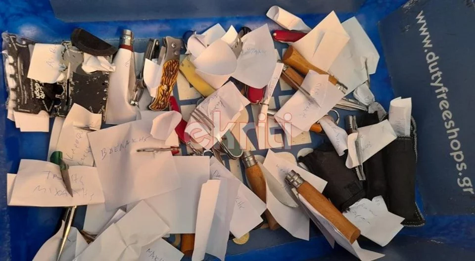 Όπως φαίνεται και στις εικόνες, σε κάθε σουγιά τοποθετήθηκε χαρτάκι με το όνομα του ιδιοκτήτη, προκειμένου να τον πάρει κατά την έξοδό του.