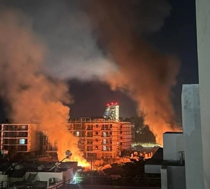 Σύμφωνα με μαρτυρίες ακούστηκαν και εκρήξεις, γεγονός που προκάλεσε αναστάτωση στους κατοίκους της περιοχής.