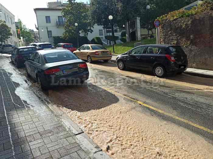 Απρόσμενο πρόβλημα στο κέντρο της Λαμίας γύρω στις 5 το απόγευμα της Μεγάλης Τρίτης (27/4) από καταστροφή κεντρικού αγωγού επί της οδού Κοραή, που είχε ως αποτέλεσμα το νερό να φτάσει μέχρι την πλατεία Ελευθερίας.