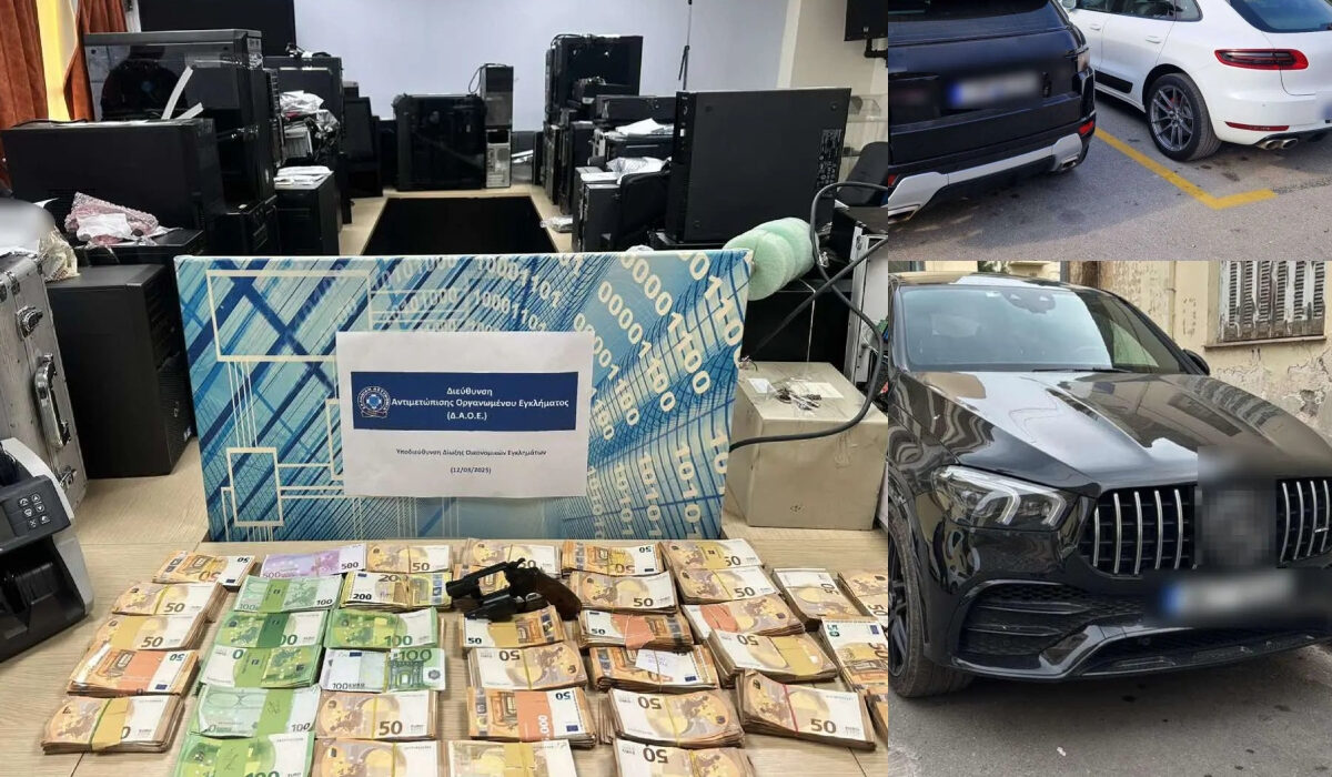 Τα κατασχεθέντα από τις έρευνες περιλαμβάνουν 100 κεντρικές μονάδες ηλεκτρονικών υπολογιστών, οκτώ πολυτελή αυτοκίνητα, πλήθος σημειώσεων, κινητών τηλεφώνων, USB stick και 520.000 ευρώ.