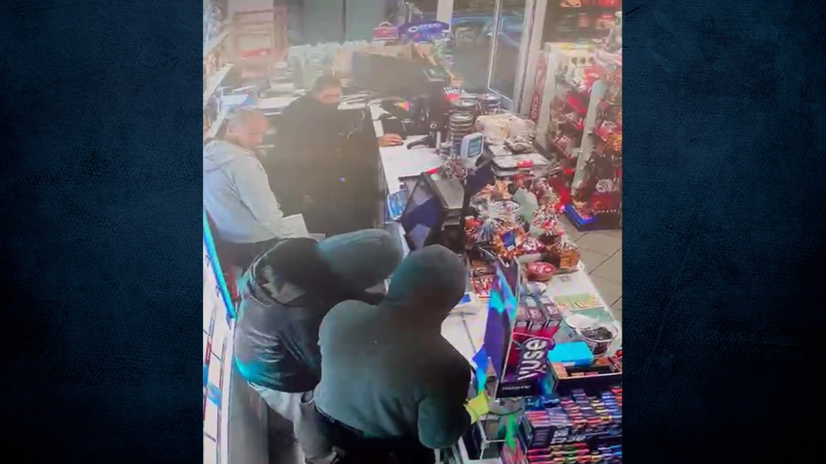 Συγκεκριμένα, δύο νεαροί άνδρες με κουκούλες μπήκαν στο μίνι μάρκετ και με την απειλή μαχαιριών ακινητοποίησαν τον ιδιοκτήτη και δύο υπαλλήλους και άρπαξαν χρήματα από το ταμείο.