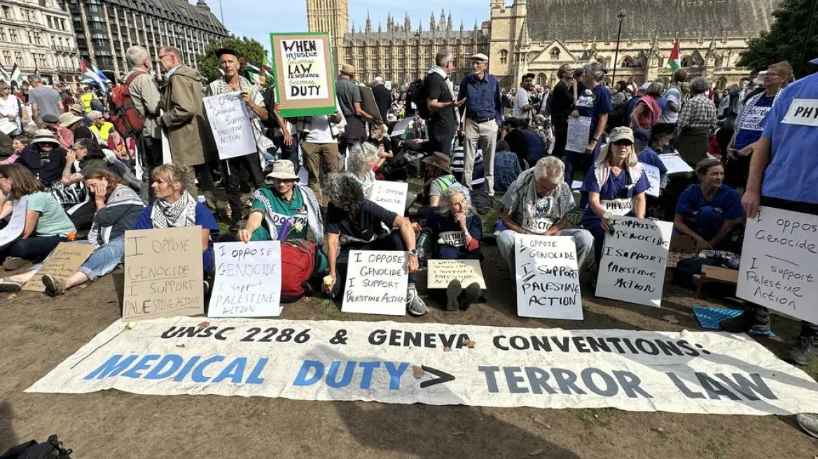 Η Βρετανία απαγόρευσε την οργάνωση Palestine Action τον Ιούλιο, σύμφωνα με τα προβλεπόμενα στη νομοθεσία κατά της τρομοκρατίας κι αφού μερικά μέλη της είχαν εισβάλλει σε μία βάση της Βασιλικής Βρετανικής Αεροπορίας (RAF) προκαλώντας ζημιές σε μερικά αεροσκάφη.