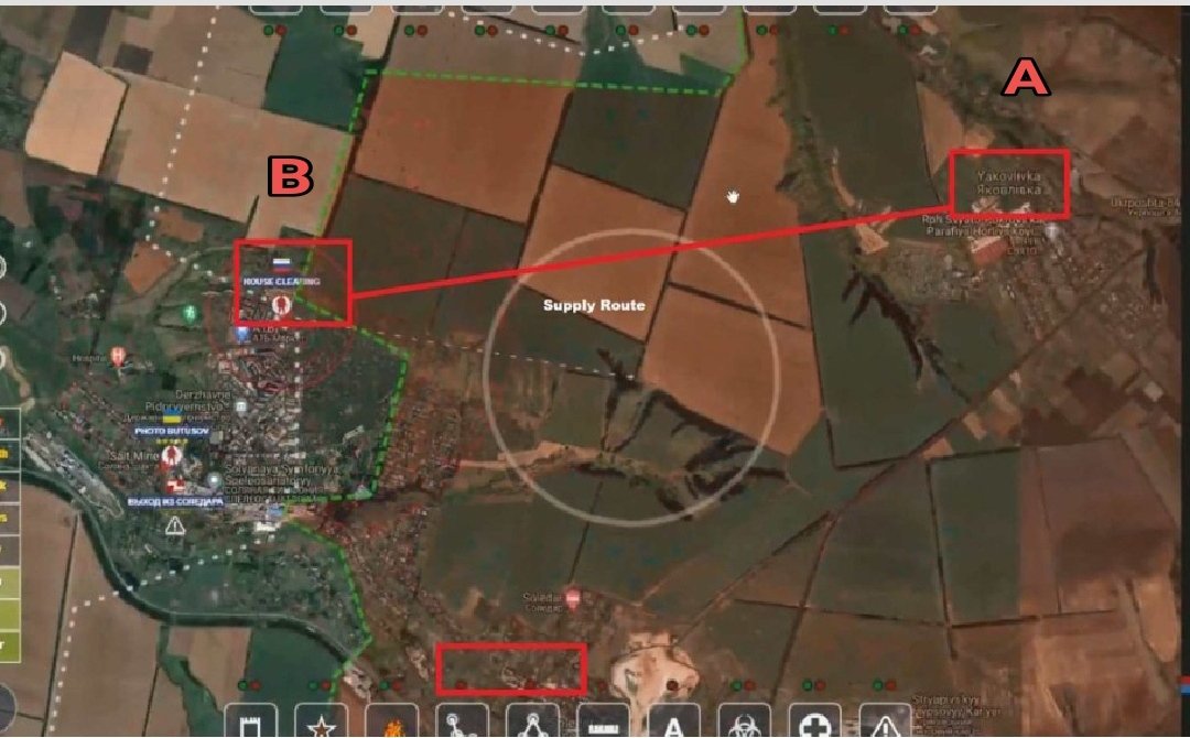 Kαι προχώρησαν σε κάθετη υπερκέραση της περιοχής που οι Ουκρανοί θεωρούσαν απόλυτα ασφαλισμένοι: Τα ρωσικά ελικόπτερα πέταξαν χαμηλά, σε «tree top level» (κάτω των 50 μέτρων), από το σημείο Α (Yakovlevka) στο σημείο Β, στα νώτα των Ουκρανών.