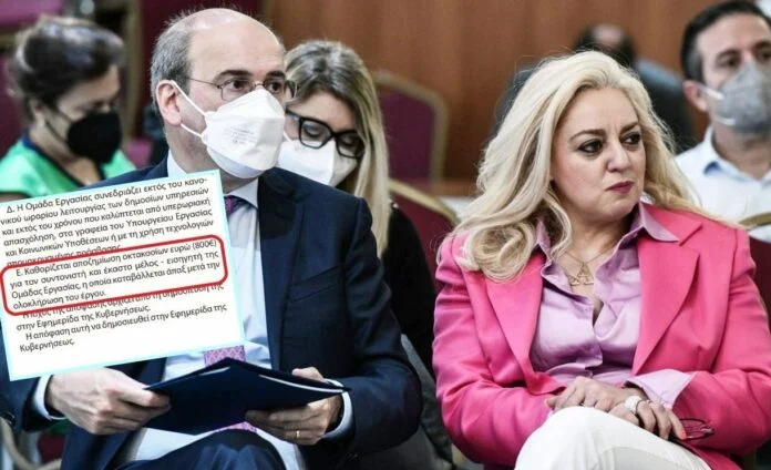 Οι συνεργάτες της γενικής γραμματέως Εργασιακών Σχέσεων θα πάρουν εφάπαξ ένα μηνιάτικο για δουλειά μιας ημέρας