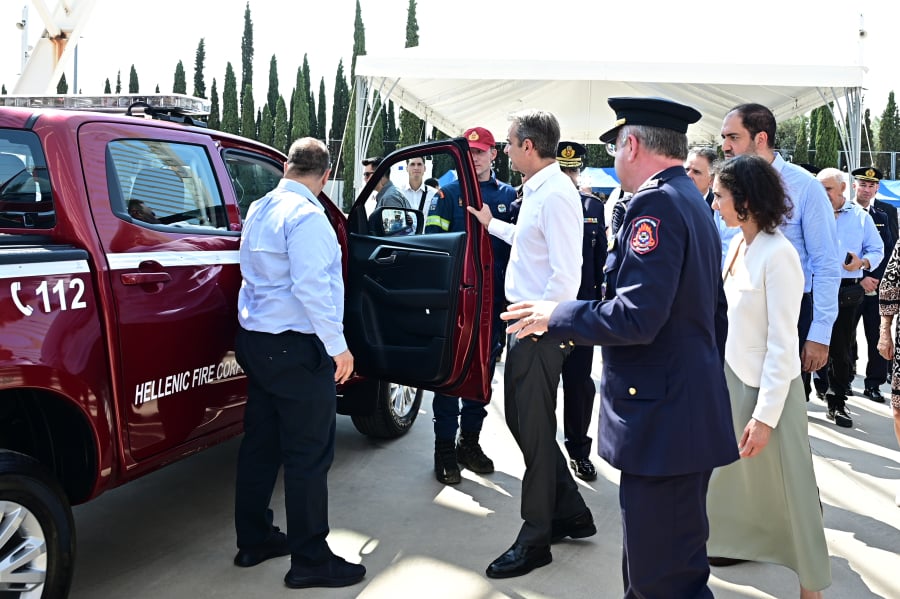 «Είμαστε στην καρδιά της φετινής αντιπυρικής περιόδου που αποδεικνύεται δυστυχώς και αυτή από τις πιο απαιτητικές των τελευταίων ετών», επεσήμανε ο πρωθυπουργός Κυριάκος Μητσοτάκης στην εκδήλωση του υπουργείου Κλιματικής Κρίσης και Πολιτικής Προστασίας για την παράδοση νέων οχημάτων στο Πυροσβεστικό Σώμα.