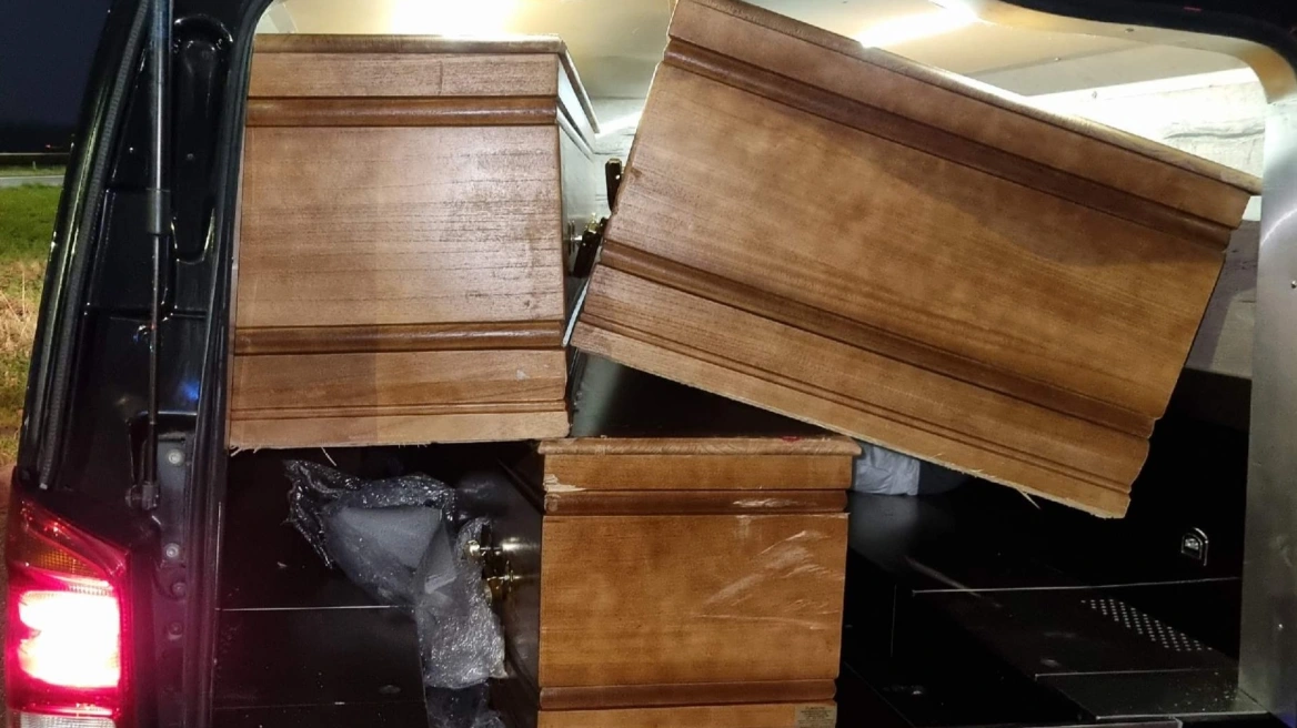 Ο άνδρας από τη Γαλλία εντοπίστηκε να οδηγεί το φορτηγάκι στο Ρότερνταμ – Οι αστυνομικοί τον πήγαν σε γραφείο τελετών και όταν άνοιξαν τα φέρετρα βρήκαν τσάντες με κοκαΐνη