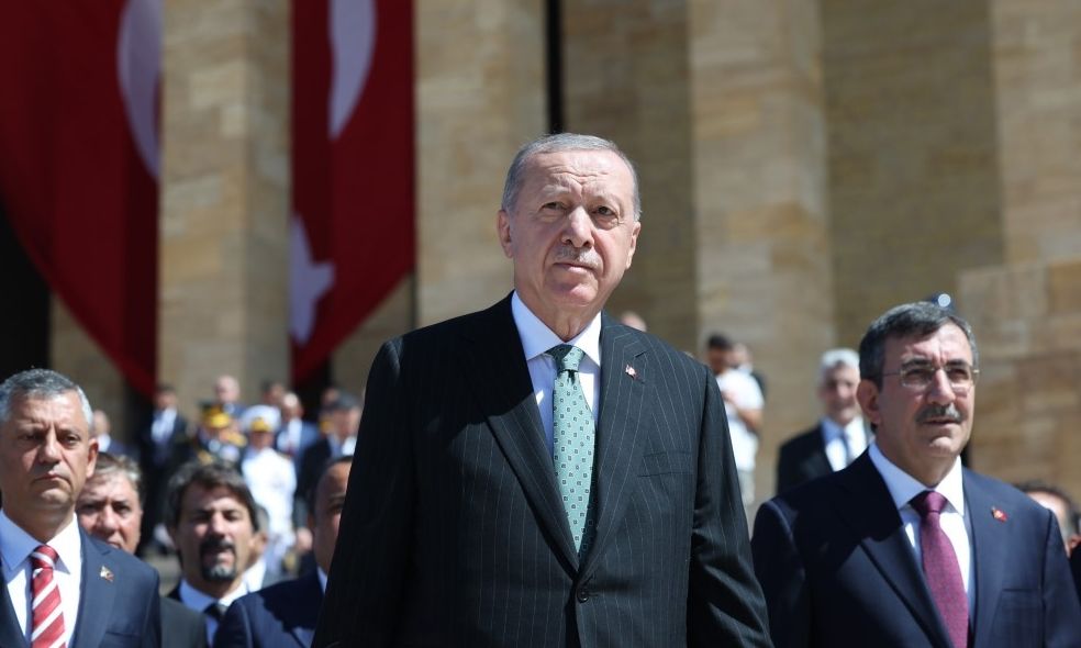 Ο Ερντογάν κατέθεσε στεφάνι διακοσμημένο σαν αστέρι και ημισέληνο στο μαυσωλείο του Ατατούρκ. Μετά από ενός λεπτού σιγή, έψαλαν τον εθνικό ύμνο της Τουρκίας.