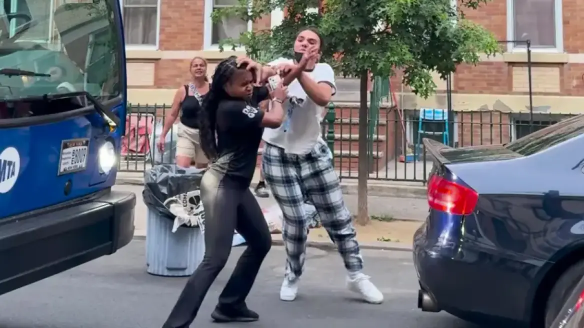 ‘A mother-daughter duo and a man allegedly attacked a driver after she attempted to remove trash cans blocking a parking spot in Queens.’