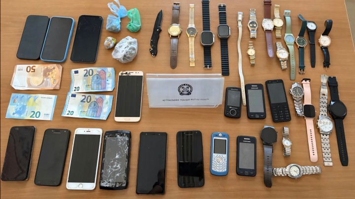 Ακολούθησε έρευνα στην κατοικία του 19χρονου, κατά την οποία βρέθηκαν και κατασχέθηκαν -20- ρολόγια και -14- κινητά τηλέφωνα, η προέλευση των οποίων ερευνάται.