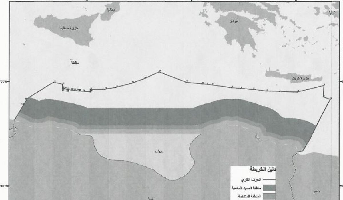 Η διακοίνωση κατατέθηκε από τη λιβυκή πλευρά στις 27 Μαΐου και συνοδεύεται από χάρτη που αποτυπώνει εξωτερικά όρια υφαλοκρηπίδας που φτάνουν έως και την Κρήτη.
