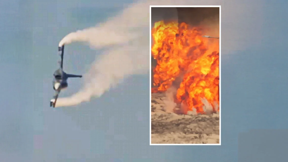 Έπειτα από λίγο κι αφού το αεροσκάφος κάνει μια στροφή, έρχεται η συντριβή καθώς το μαχητικό χάνει απότομα ύψος και συντρίβεται στον χώρο δίπλα στην πίστα του αεροδρομίου.