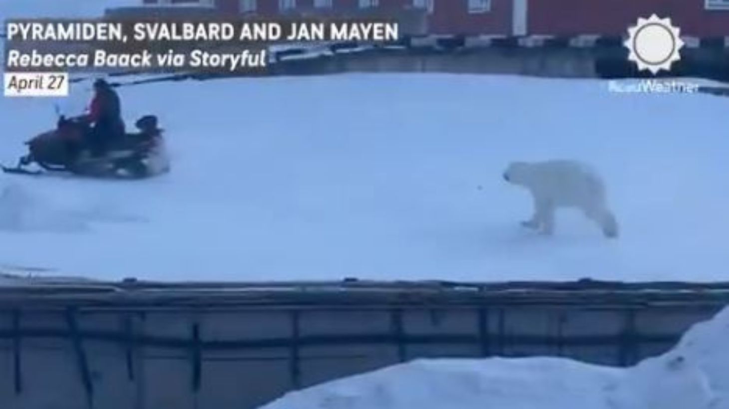 Στα πλάνα φαίνεται ο άνδρας να τρέχει μακριά από το ζώο μέχρι να φτάσει σε ένα snowmobile, το οποίο χρησιμοποίησε για να τρομάξει την αρκούδα και να διαφύγει από το σημείο. Το βίντεο έκανε τον γύρο του κόσμου.