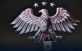 Όσον αφορά τα τρία αστέρια πάνω από τον αετό, συμβολίζουν το τέλος της διαμάχης ανάμεσα στο κράτος και τους πολίτες και την έναρξη μιας νέας σχέση με το βλέμμα στραμμένο στο μέλλον. Τα αστέρια συμβολίζουν τη σημαία και τον λαό και είναι πάνω από τον αετό που συμβολίζει το κράτος απελευθερωμένο από τον προηγούμενο μιλιταριστικό του χαρακτήρα με μια ασπίδα στο προηγούμενο έμβλημα.